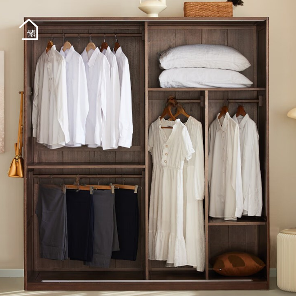 Tủ Quần Áo Hona - Sắc nâu trầm cho không gian vừa sang trọng vừa cổ điển.